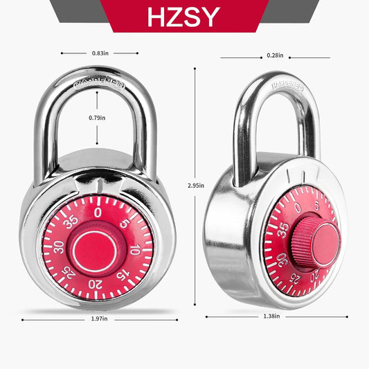 HZSY Fixed Dial Combination Padlock 1 Pack - Red Turntable Lock for Gym, School, Toolbox - 2" Wide, Various Combinations