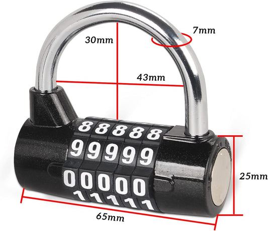 SISAV 5-Digit Combination Lock - Gym Padlock for School Lockers, Tool Boxes, Fences - Replaceable Combo Lock in Black (1 Pack)