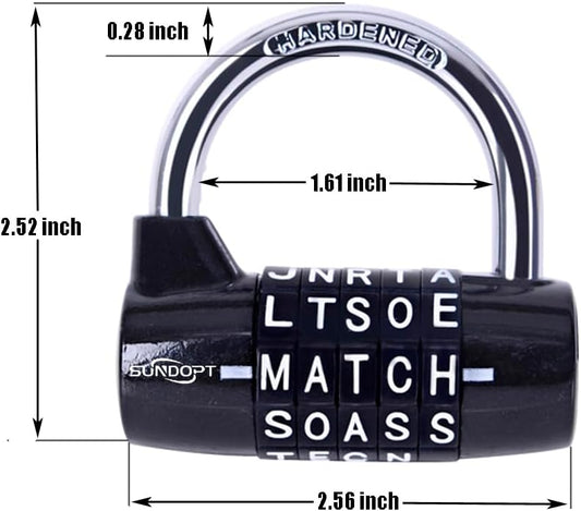 sundopt 5 Letter Word Combination Lock for School Gym Locker, Sports Locker, Toolbox - Black