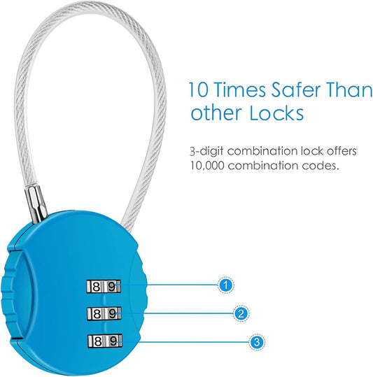 TSA Approved 2-Pack Combination Cable Locks for Travel, Keyless 3-Digit Padlocks with Alloy Body, Ideal for Gym Locker and Golf Bag Case
