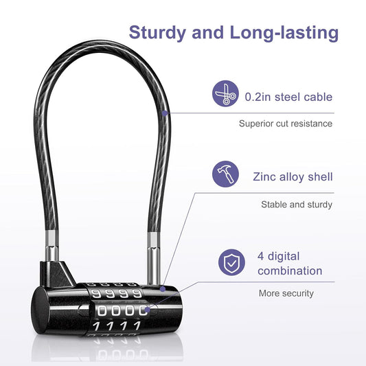 Waterproof 4-Digit Combination Padlock with Long Shackle Cable - Ideal for Outdoor Fence, Gym, School Locker, Suitcase, Bike Security - OQIMAX