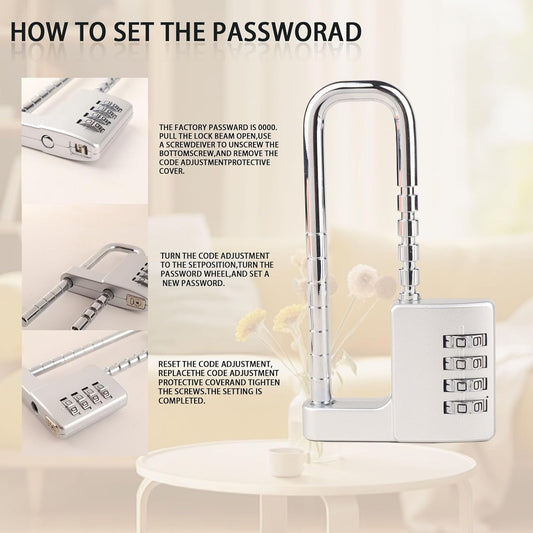 WANLIAN 4-Digit Password Padlock with Long Shackle - Outdoor Waterproof Bicycle Lock for Household Cabinet