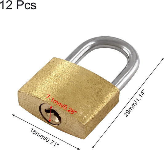 12-Piece Set Mini Brass Padlocks with Keys for Luggage, Backpacks, Jewelry Box