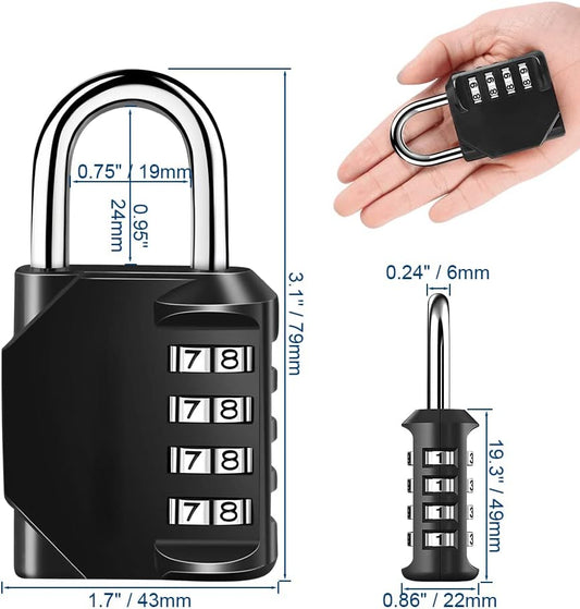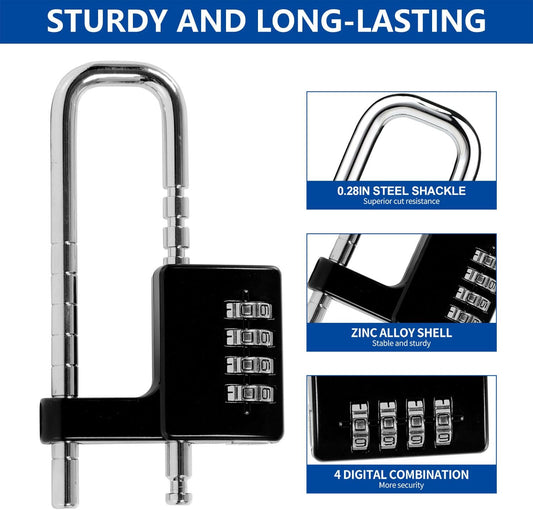 Adjustable 4 Digit Combination U-Shaped Padlock for Gym, College, Outdoor Sports - Set of 4