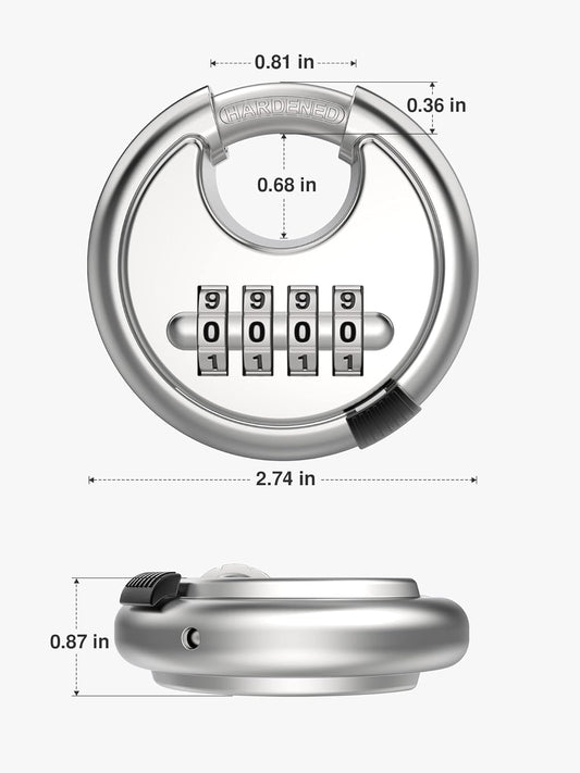 2 Pack Puroma Stainless Steel Disc Padlocks with Hardened Shackle - Keyless Heavy Duty Combo Lock for Outdoor Use