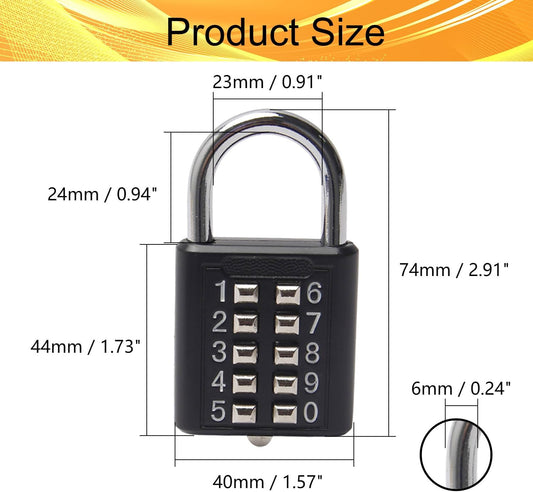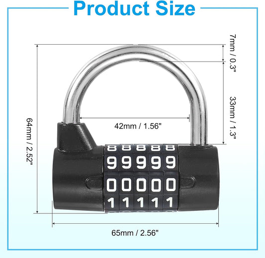 5 Digit Combination Padlock for Gym Locker, Fence, Toolbox - Keyless Zinc Alloy Safety Lock - Black