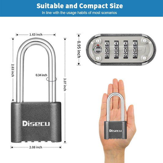 Adjustable Long Shackle Combination Padlock for School, Bike, Gym, Sports Lockers, Fences, Gates, Tool Cases, and Pools - Durable Zinc Alloy Lock.