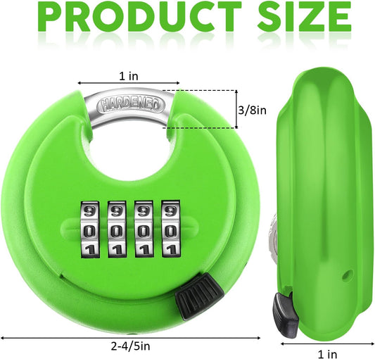 Maitys Round Stainless Steel Combination Lock with Hardened Shackle - Green, 4 Digit Code Disc Padlock for Sheds, Lockers, Gym, Fence Gate