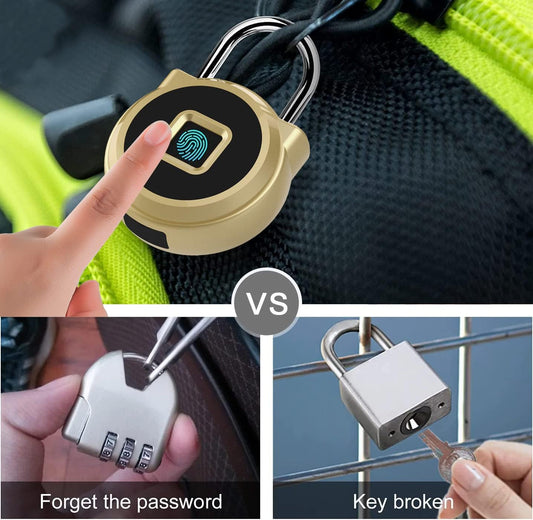 Gold Metal Fingerprint Padlock - Keyless Combination for Gym Locker, Shed, Storage Units, Luggage