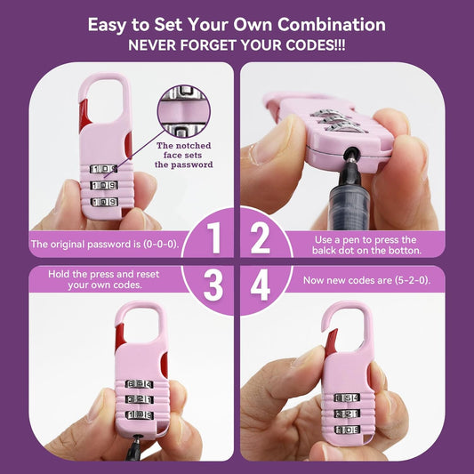 Set of 3 Pink Mini Combination Padlocks for Kids, Teens - Ideal for School Backpacks, Diaries, and Travel - BARRYSAIL Mini Locks