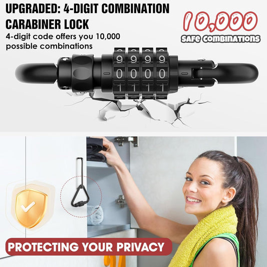 Heavy Duty Combination Locks with Carabiner Clip - 4-Digit Triangles Code for Bike, Suitcase, Travel Bag (2 Pack, Black)