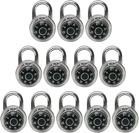 Pack of 12 LanuBe Standard Dial Combination Locks - 2" Wide with Multiple Combinations for School, Gym, Employee Lockers & More