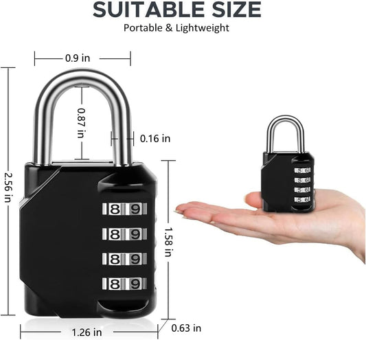4 Pack Puroma Waterproof 4 Digit Combination Lock for School Gym Locker, Sports Locker, Fence, Toolbox, Gate - Black
