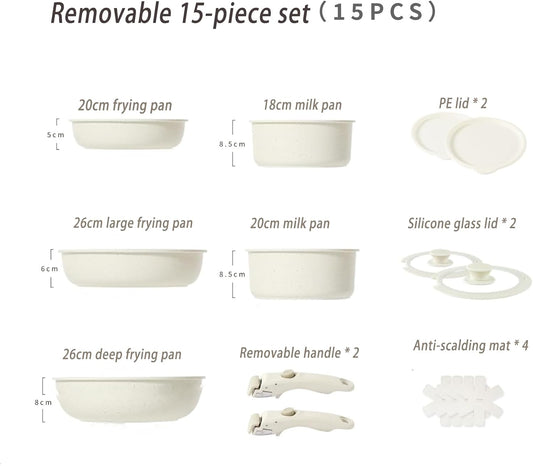 5PCS Cuisinluv Non Stick Pots and Pans Set with Detachable Handle - Induction Cookware for RV Cooking - Dishwasher & Oven Safe Cream White