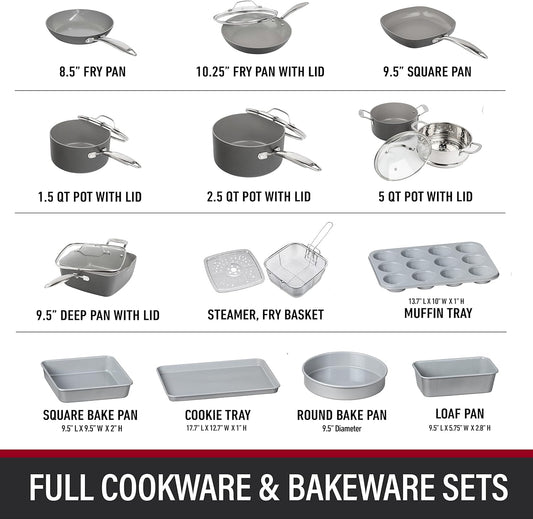 Granitestone Pro 20-Piece Nonstick Cookware Set - Hard Anodized, Durable, Toxin-Free, Dishwasher Safe