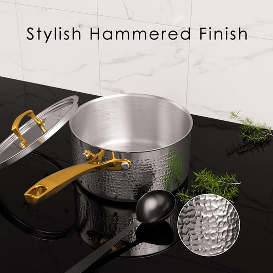 Professional Grade 10-Piece Tri-Ply Stainless Steel Cookware Set, Non-Toxic, Induction Compatible, Dishwasher and Oven Safe, Hammered Kitchen Pots and Pans