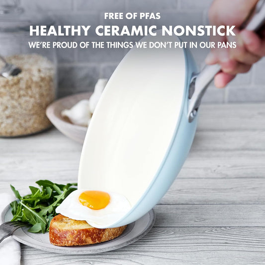 12-Piece Healthy Titanium-Infused Ceramic Cookware Set - Light Blue Induction Nonstick Pan & Pot Set with Steamer, Spoon, and Turner