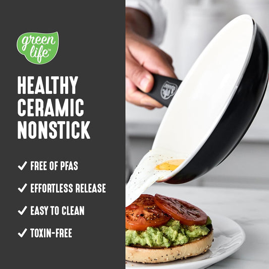 GreenLife Soft Grip Ceramic Nonstick Cookware Set - 8 Piece, PFAS-Free, Non-Toxic, with Glass Lids, Utensils, Stay-Cool Handles - Black, Dishwasher & Oven Safe