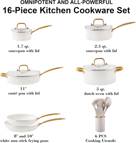 Non-Toxic Ceramic Cookware Set with Dutch Oven, Frying Pan, and Utensils - Gold Kitchen Pots and Pans Gift Set