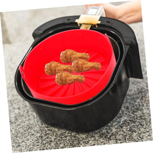 Red Silicone Liners for 5-7 QT Air Fryers - Non-Stick Square Basket Pot - 8.5 Inch Foldable Oven Accessories