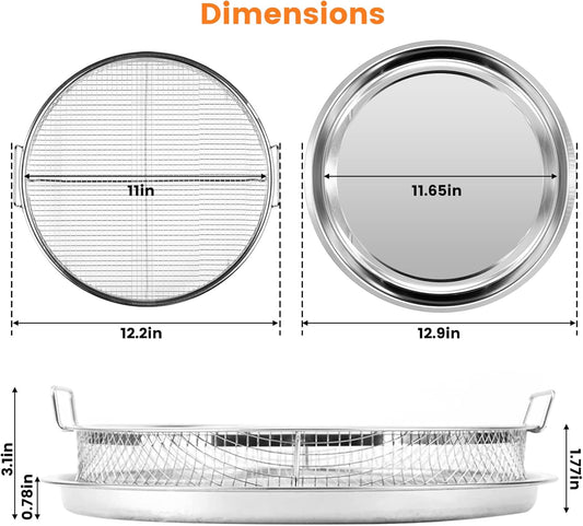 Round 12'' Non-Stick Stainless Steel Air Fryer Basket Set for Oven - 2 Piece Accessories Rack Roasting Grill Tray for Convection Oven, Dishwasher Safe