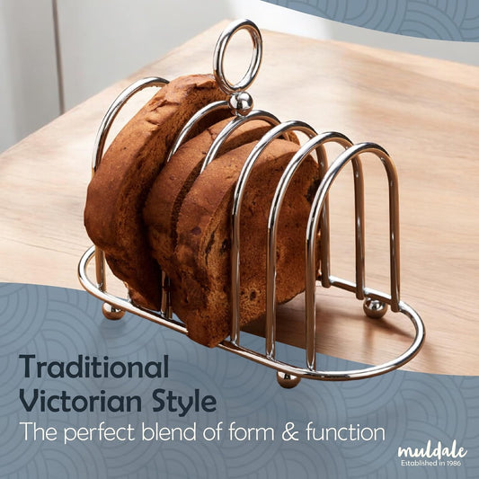 Vintage Victorian Style Muldale Chrome Toast Rack Holder for 6 Slices - Sturdy Stainless Steel Stand with Ball Feet - British Caddy
