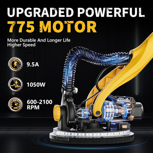 Alloyman 1050W Electric Drywall Sander with Vacuum Dust Collection - 7 Speeds, LED Light, Dust Bag & Hose