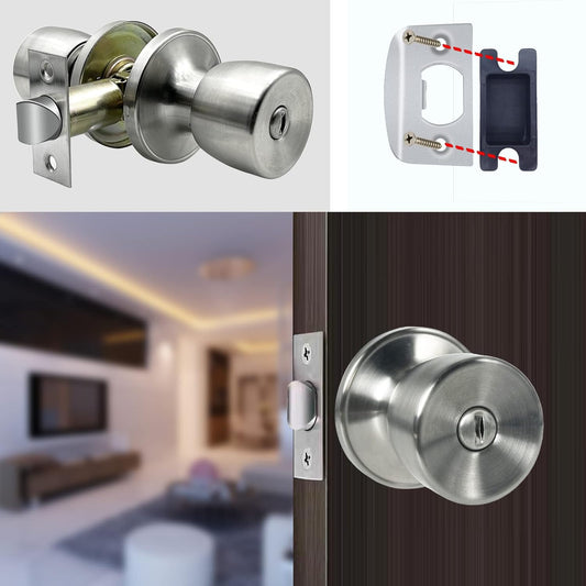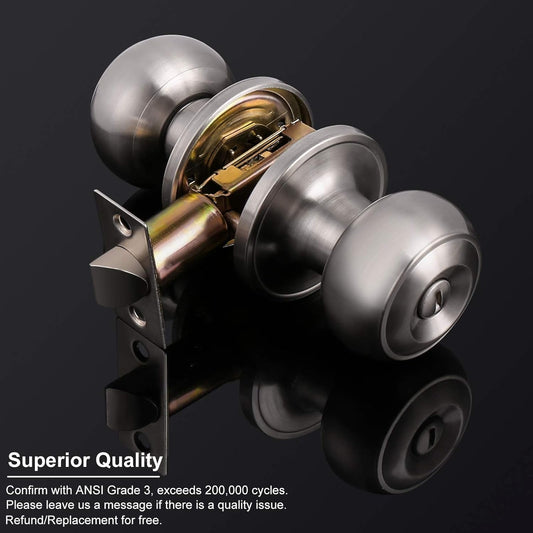 Stainless Keyless Privacy Locking Door Knob for Bedroom and Bathroom - Satin Nickel Ball Passage Door Knob