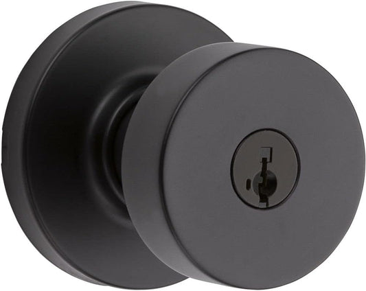 Secure your front entrance and bedroom with the Kwikset Pismo Entry Door Knob in Matte Black, featuring a pick-resistant SmartKey rekey security system and Microban protection.