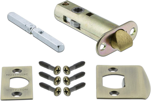 Antique Brass Passage Door Knob Set with Victorian Plate - 2.375" Size, New York Knob Style