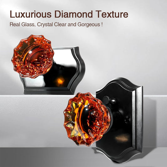 Vintage Diamond Crystal Door Knobs with Lock, Dark Brown Glass Interior Knobs for Bedroom Bathroom - Antique Design
