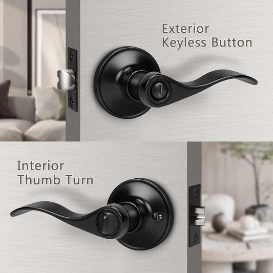 Set of 8 Matte Black Door Knobs for Bedroom/Bathroom Privacy with Thumb Turn Lock - Reversible for Right or Left Hand Doors