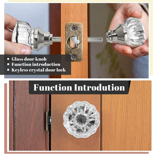 Satin Brass Crystal Glass Privacy Door Knob Set for Bed/Bath - BonKuDoo