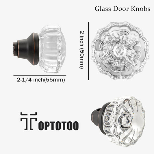 Vintage Crystal Glass Door Knobs - Antique Style Interior Door Knob Replacement with Oil Rubbed Bronze Finish