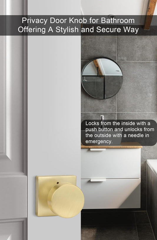 Contemporary Brushed Gold Privacy Interior Door Knob for Bedroom and Bathroom - Heavy Duty Zinc-Alloy, 1 Pack