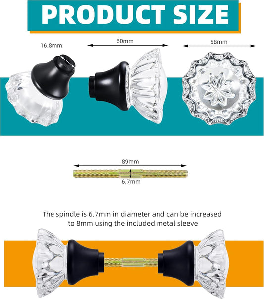 Vintage Crystal Glass Door Knobs Replacement Set for Old Antique Mortise Locks, Matte Black Finish - Interior Door Upgrade