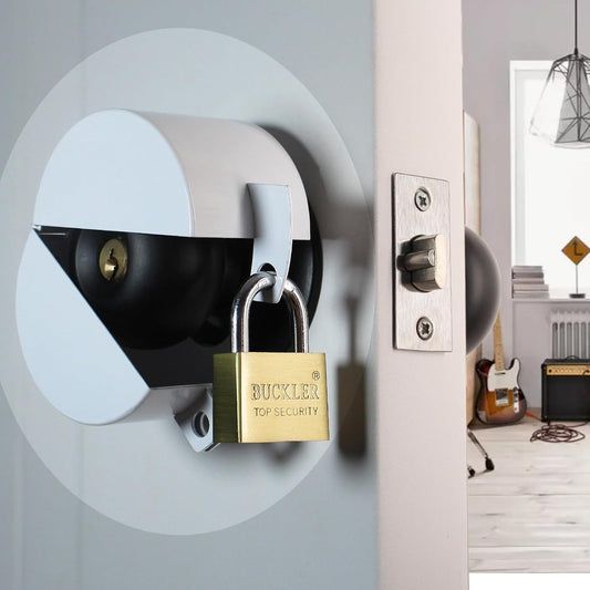 White Door Handle Lock Cover with Padlock - Temporary Knob Lockout Device for Faucet Safety - Prevent Entry into Keyhole