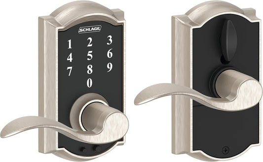 Schlage Touch Camelot FE695 CAM 619 Acc Satin Nickel Smart Lock with Accent Lever