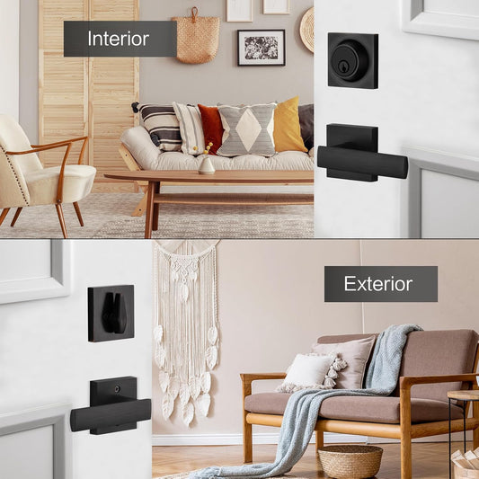 Heavy Duty Front Door Locksets with Single Cylinder Deadbolt & Square Exterior Lever Combination Set - Oil Rubbed Bronze