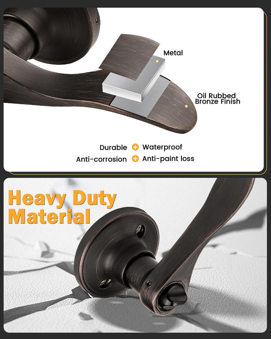 10 Pack Oil Rubbed Bronze Privacy Interior Door Locks with Drop/Wave Levers - Keyless Bed/Bath Locksets
