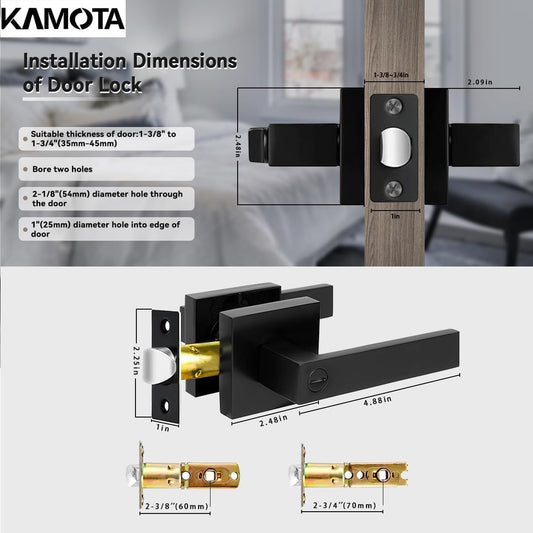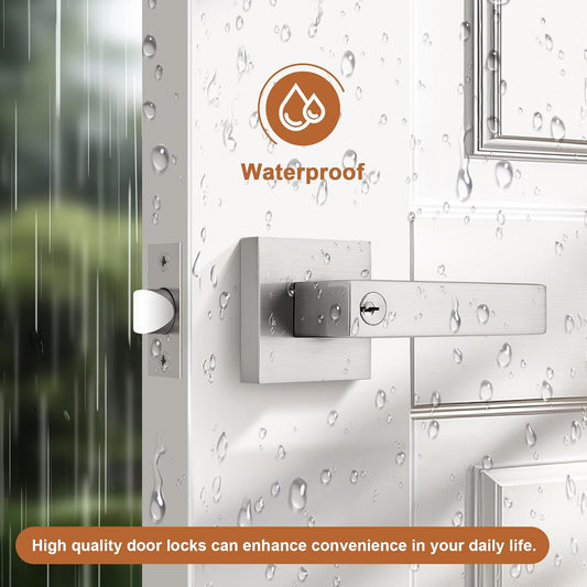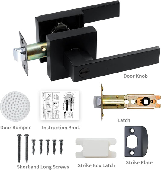Square Keyless Entry Door Lock with Privacy Function for Bedroom, Interior/Exterior Heavy Duty Door Lever