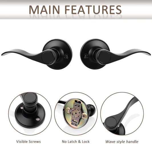 4 Pack Probrico Wave Style Dummy Door Lever Handle Set, Left and Right Hand, Black Finish for Laundry Room, Hallway, Closet - Non-Turning French Door Handle
