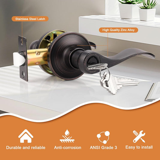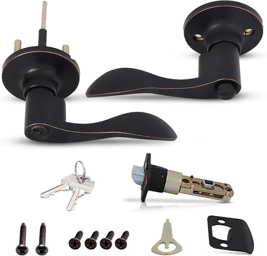 Honeywell Wave Lever Door Handle with Keys - Bedroom Door Lever, Oil Rubbed Bronze - Anti-Bump Resistant - Reversible for Right & Left Doors