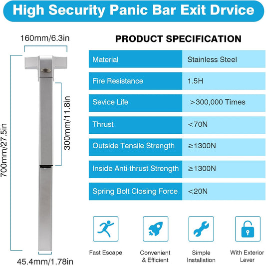 Stainless Steel Panic Bars with Handle 2-Pack for 27.5”-41” Commercial Doors - Emergency Exit Device with Exterior Lever