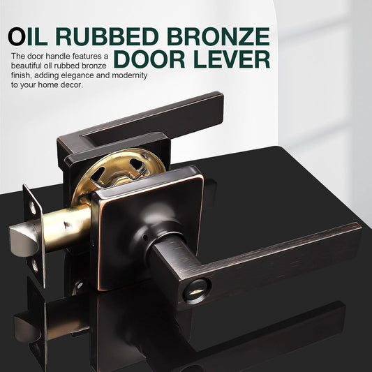 8 Pack GOBEKOR Privacy Door Handles - Oil Rubbed Bronze Square Lever Locks for Bedroom & Bathroom - Interior Bronze Door Hardware