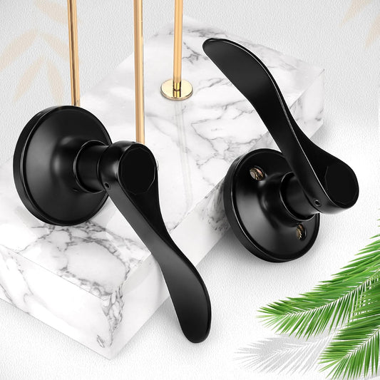 7 Pack Matte Black Privacy Door Levers for Bed and Bath, Keyless Locksets for Left/Right Handed Doors
