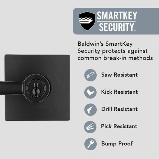 Matte Black Baldwin Spyglass Entry Door Handle Lever with Keyed Lock, Reversible Design, SmartKey Re-key Technology, Microban Protection