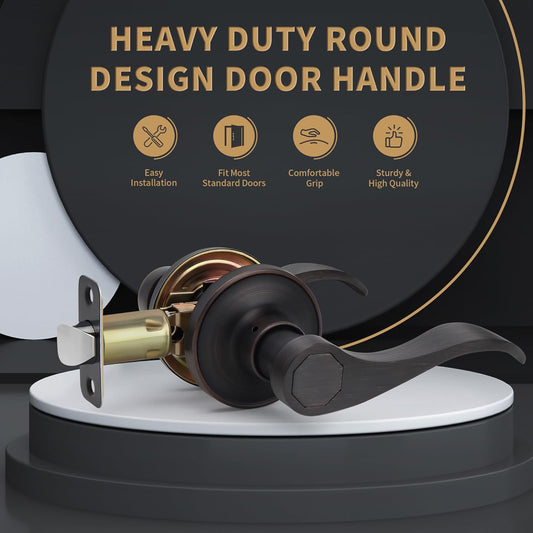 Oil Rubbed Bronze Wave Style Passage Door Handle Lever - Non-Locking Reversible Lever for Left/Right Doors - Ideal for Hallway/Closet