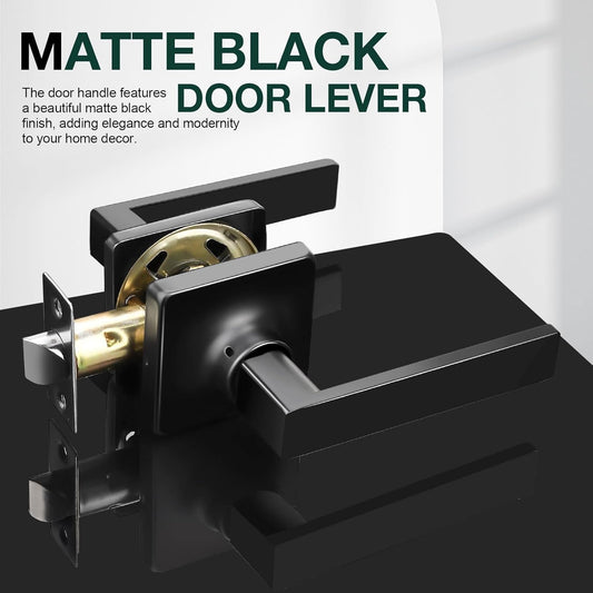 6 Pack Matte Black Passage Door Levers with Lock for Hall Closet - Modern Square Lever Door Handles for Interior Doors