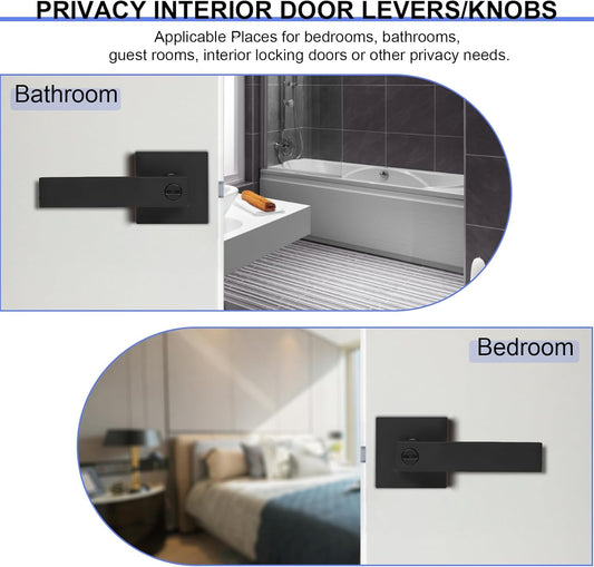 10 Pack Probrico Matte Black Privacy Door Handles - Heavy Duty Interior Door Lever Lockset for Bedroom and Bathroom - Keyless Hardware